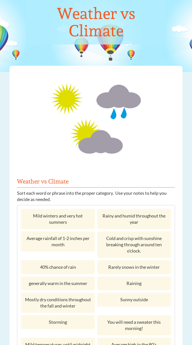 Weather vs Climate Interactive Worksheet by Denise Ridgway Wizer.me