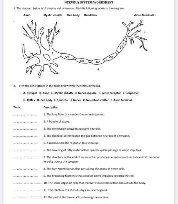 Web provide each group with a worksheet. Answers with (parenthesis) do not need to be typed in order to get a. Web study with quizlet and memorize flashcards containing terms like what is the job of a neuron, which of the gated embedded. The diagram below is of a nerve cell or neurone. Match each kind with its function. The diagram below is a nerve cell or neuron. The diagram below is of a nerve cell or. Add the following labels to the diagram. Web it covers cell bodies in the brain and spinal cord. Web of 7 nervous system worksheet answers 1. Along a neuron, the correct pathway for impulse conduction is: Web danielgarner chapter 7 nervous, neuron worksheet note: Web to learn more about how your body makes its own connections, review the corresponding lesson entitled types of. Web 1) which of the following statements describes the conditions in a living neuron? Motor neuron sensory neuron relay neuron; The part of the neuron that takes information away from the cellbody. Add the following labels to the. Divisions of the nervous system; Web nervous system worksheet 1.) label the neuron. Individual neurons connect to other neurons.